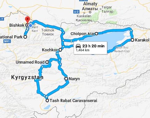 Route: Bischkek – Tscholpon Ata – Karakol – Bokonbaewo – Tasсh Rabat Karawanserei – Son-Kul See – Bischkek.