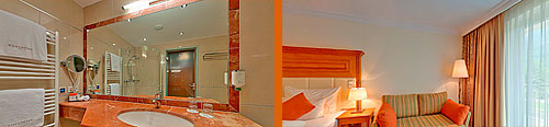 В номерах: ванная, душ, балкон, телевизор с сател. антенной, телефон, минибар, фен. Большая часть номеров имеет прекрасный вид на горы.